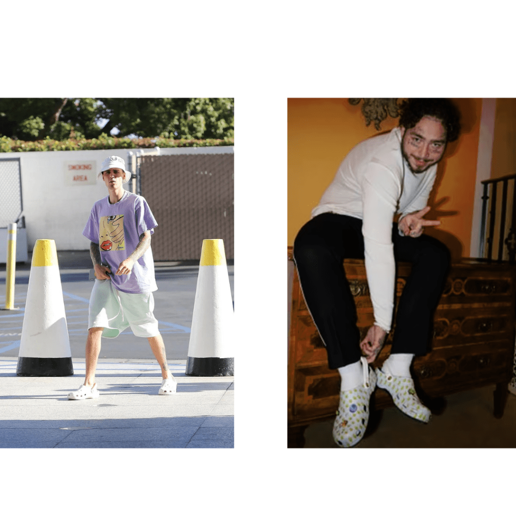 Crocs have found their way into the wardrobes of celebrities and influencers, further boosting their popularity. High-profile collaborations with designers like Balenciaga and partnerships with stars such as Post Malone and Justin Bieber have elevated Crocs to a fashionable status symbol. These endorsements have helped Crocs transition from functional footwear to a trendy fashion statement.